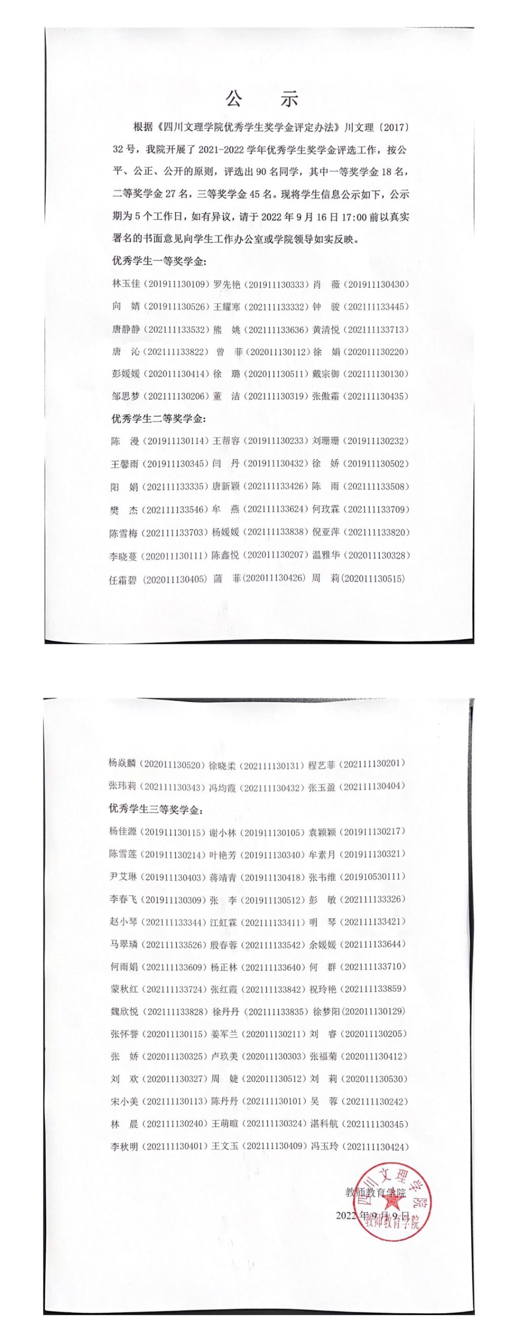 太阳成集团tyc151cc2021-2022学年度优秀员工奖学金公示通知