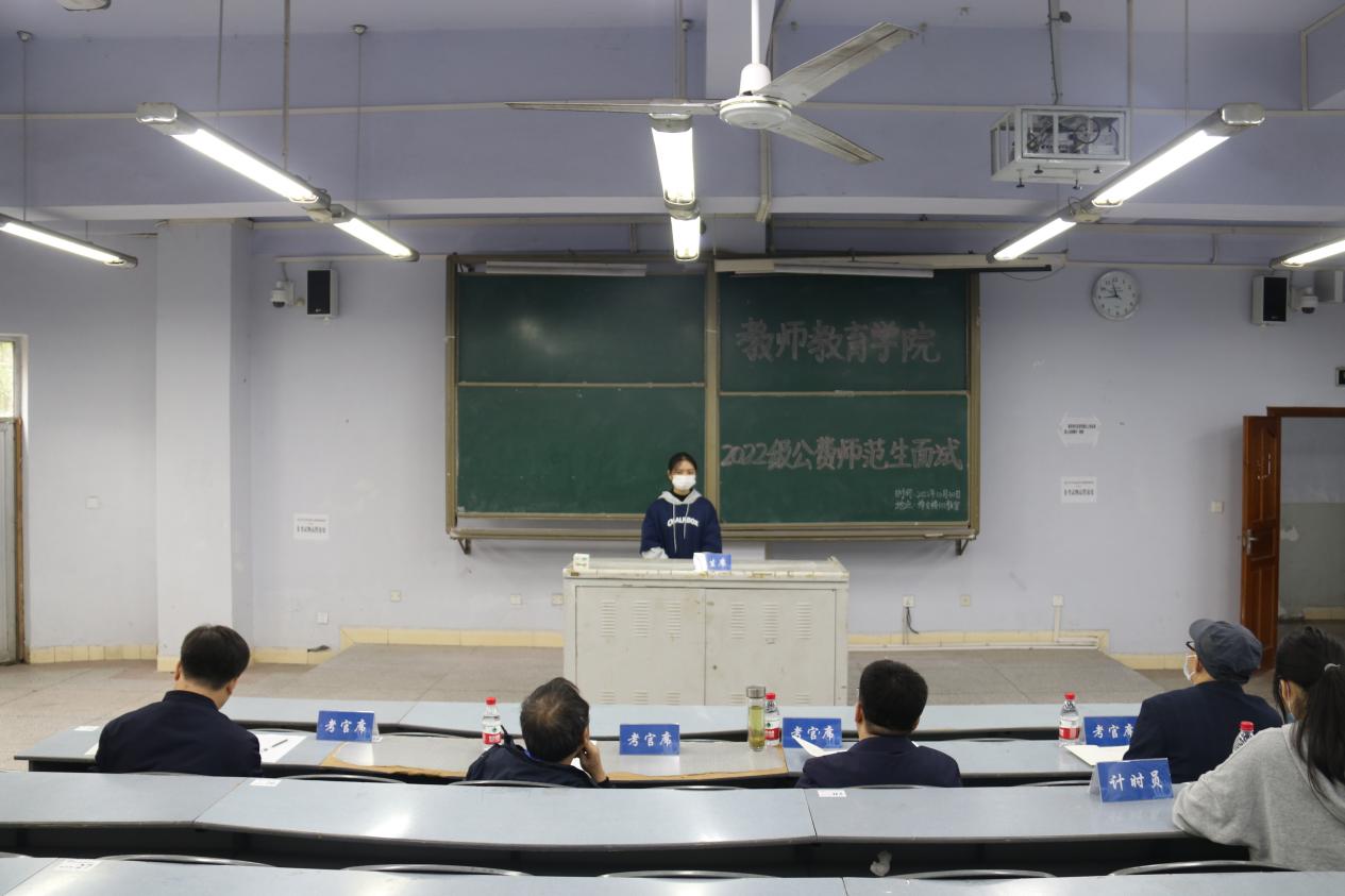 根据公司统一安排和要求,为更好地培养优秀人才,提升公费师范生整体素质,公司于2022年10月30日8:30在博文楼进行2022级公费师范生面试。太阳成集团tyc151cc党总支书记王燮辞,太阳成集团tyc151cc经理、教师教学发展中心主任叶怀凡,党总支副书记王文娟,教师教学发展中心副主任刘箭,副经理赵栅凌,教学科研办公室主任彭静,小学教育教研室主任刘勉,特殊教育教研室主任陈立,副教授张腊梅、张成武担任面试官。2022级公费师范生参加面试。