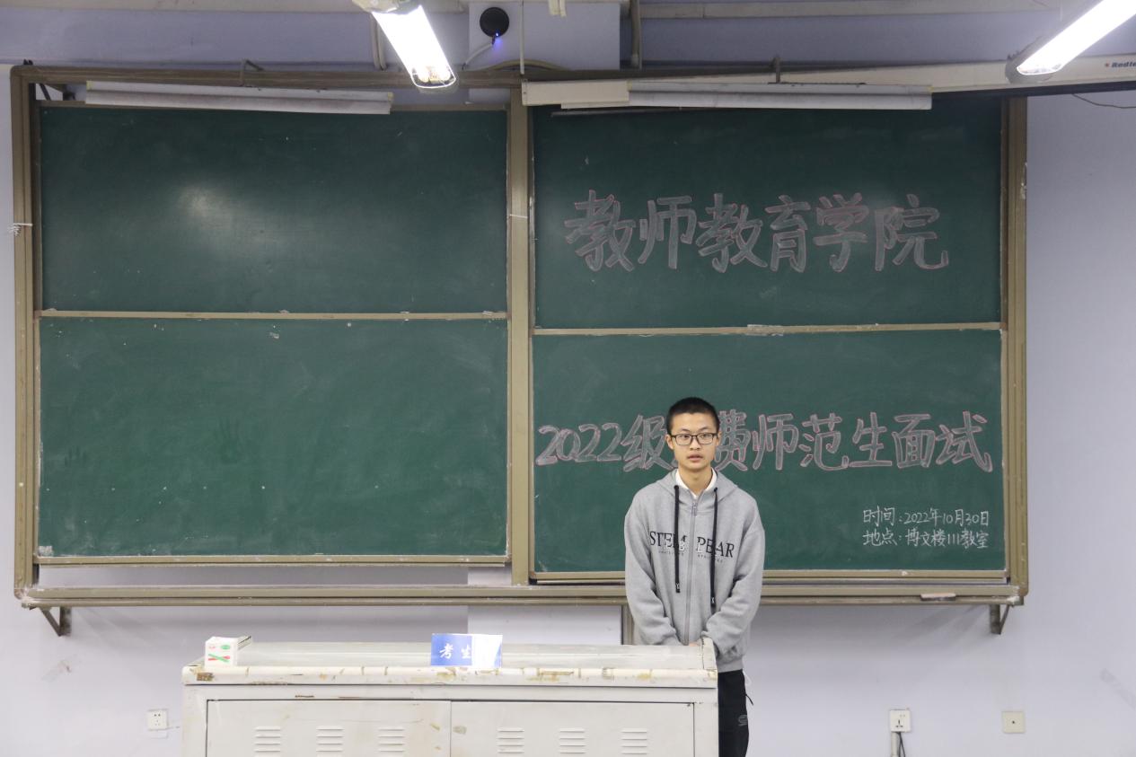 面试当天,首先由李思颖老师为考生讲解面试流程及注意事项。随后,考生分为三组有序进行签到、抽题、候考等工作。面试过程中,各组考生依次上台进行自我介绍,并认真分析抽取的题目,从容不迫地进行回答。他们准备充分,面对老师的提问沉着冷静,回答问题思路清晰。面试流程规范有序、过程平稳顺利,展现出了2022级公费师范生良好的专业素养。