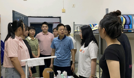 为深入了解2023级新生入住适应情况,帮助新生更好更快地融入新集体与新环境,2023年9月13日下午,党委书记王燮辞、正处级组织员田江、党委副书记王文娟、副经理赵栅凌及2023级带班辅导员一行走进新生宿舍,与新同学们畅谈新学期新生活。