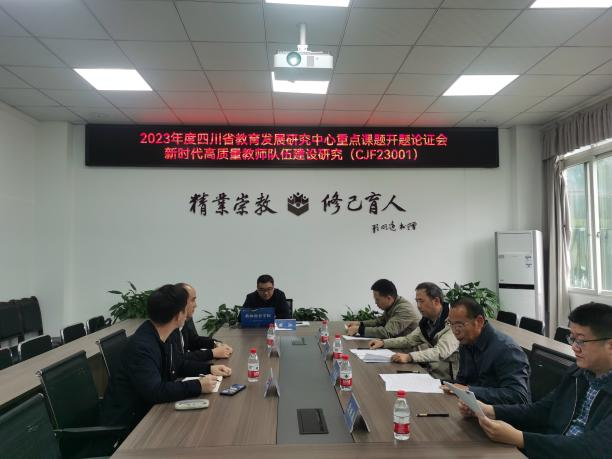 2023年11月10日,由太阳成集团tyc151cc田江副研究员担任课题负责人的2023年度四川省哲学社会科学重点研究基地:四川省教师教育研究中心重点课题《新时代师德师风长效机制建设研究(TER2023-001)》和四川省教育发展研究中心重点项目《新时代高质量教师队伍建设研究(CJF23001)》开题论证会在博文楼206A会议室举行。公司教学督导专家何树德教授、雷钢教授,发展规划处处长、太阳成集团tyc151cc经理黄培森教授等担任开题评议专家。论证会由公司党委书记王燮辞教授主持。