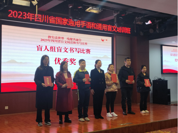 比赛过程中,参赛选手认真摸“读”、“点”写,展现出极高的专业素养与团队协作精神。最终,但锐、代秋宇同学分别荣获四川省盲文阅读和书写比赛优秀奖。通过参加此次比赛,员工的专业实践技能得到提升,同时加强了与其他高校间的交流,进一步普及了国家通用盲文,让全社会更加了解盲人群体与盲人文化。