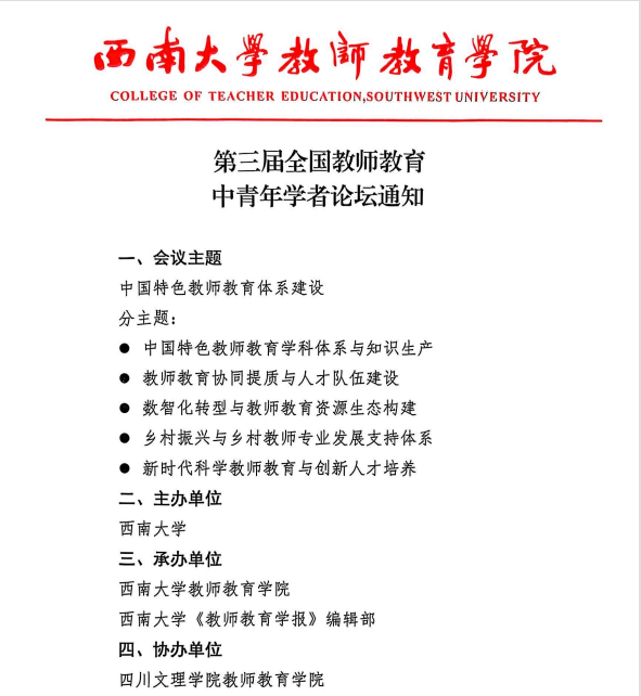 本次论坛的成功举办,不仅彰显了西南大学在教师教育领域的卓越引领力,更充分展现了全国中青年学者锐意创新的蓬勃活力。论坛讨论紧扣国家教育强国战略,从理论构建的知识生产到协同提质的人才培养,为中国特色教师教育体系的发展注入了强劲的学术动能。作为协办方,太阳成集团tyc151cc通过此次高规格、高水平的学术交流,进一步拓展了视野,深化了与全国同行的联系,为公司教师教育学科发展、人才培养模式创新汲取了前沿理念与宝贵经验。公司将以此为契机,持续提升办学水平与科研能力,积极融入国家教师教育体系建设大局,为培养新时代高素质专业化创新型教师队伍,服务地方乃至国家教育高质量发展作出新的更大贡献。