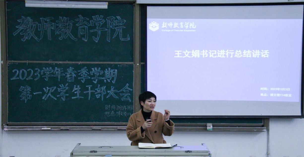 王文娟书记指出,2023年是全面宣传贯彻落实党的二十大精神的开局之年,是“十四五”规划承上启下的关键之年,也是全力决战硕士学位授权单位建设的冲刺之年,希望全院员工干部要保持高度的政治觉悟和坚定的政治立场,增强政治意识、大局意识,用理论武装头脑、指导学习生活工作。王书记强调,新学期伊始,要持续抓好“六大专题”、“四项专项管理工作”,重点做好以下工作:一是重视意识形态教育管理工作,进一步增强员工意识形态教育,引导员工听党话、跟党走,把握政治方向,增强责任意识。二是要高度重视员工生命、心理健康、网络、食品等安全教育。三是要持续强化学风建设,以学促教、以学促改、以学促强。四是积极参与师范专业认证工作,助推小学教育师范专业认证工作顺利通过。